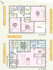 - ルーフバルコニー、システムキッチン、カウンターキッチン、シャンプードレッサー、浴室乾燥機、モニタ付インターホン、洗浄便座、ウォークインクローゼット、複層ガラス、床下収納、トイレ2箇所、電気,浄水器,給湯,フローリング,24時間換気システム,収納スペース,ディンプルキー,火災警報器等設置済